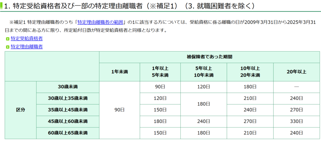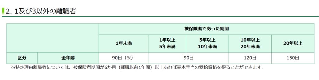ただ、特定事由等に該当すればこちらの表の給付日数となります。 特定事由等とは、例えば勤務先が倒産したとか、リストラにあったとかです。 その他にも残業時間が多かった場合なども該当するので、意外と特定事由に該当する方が多いです。